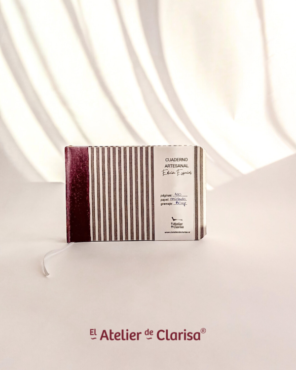 ✓ Lomo forrado con tela de encuadernar e impresión con técnica Hot Stamping.
